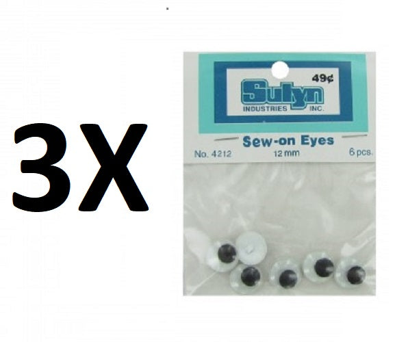 These 12mm eyes are great for any project that requires an extra eye or two. They include a notch on the back for sewing or they can be glued to a project. Each features and freely moving "pupil". There are six eyes in each package.