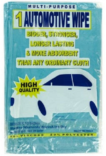 Stronger longer lasting and more absorbent than an ordinary cloth this reusable multi-purpose auto wipe gently and thoroughly cleans any surface and can be used again and again. Wipe is intended to be used wet or damp. Measures approximately 20" x 13". Machine washable/line dry.