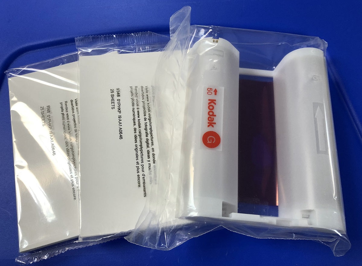 Kodak G50 color ink cartridge with paper packs (2 packs of 25 sheets) for G600 printer. Provides borderless acid-free prints with brilliant instantly drying colors. Waterproof and stain-resistant. Still in factory sealed packaging.