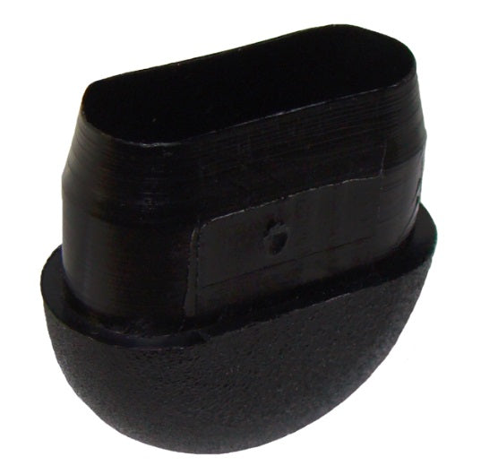 Black oval plastic glide fit inside hollow oval chair leg. Fits 5/8" x 1-1/4" outside diameter oval chair leg. Rocker bottom accommodates angled or straight legs.