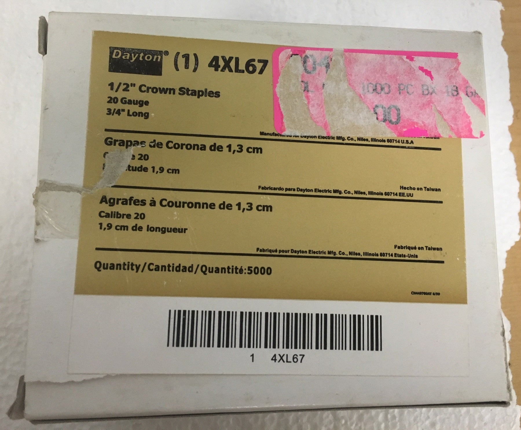 NOS Dayton 4XL67 1/2" Crown 20 Gauge Staples (5000 ct box)