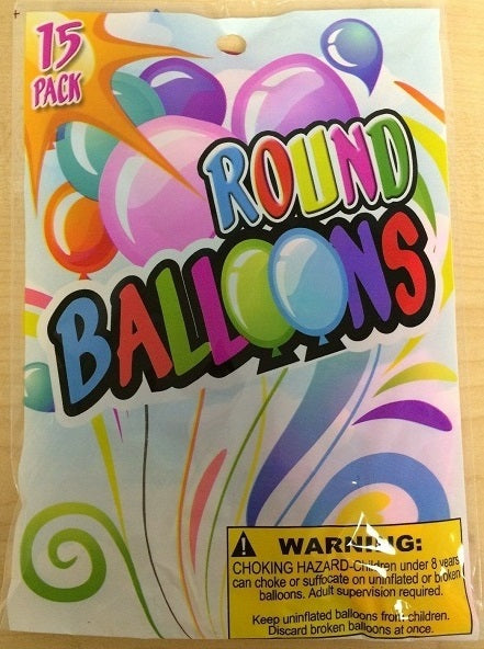 These colorful balloons will add a bright and festive compliment to any party space. Bag of 15 ensures there's plenty for everyone. Colors include orange red white yellow blue and green. CHOKING HAZARD - Children under 8 yrs. can choke or suffocate on uninflated or broken balloons. Adult supervision required. Keep uninflated balloons from children. Discard broken balloons at once.